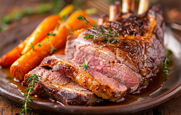 Agneau rôti & carottes nouvelles glacées au thym